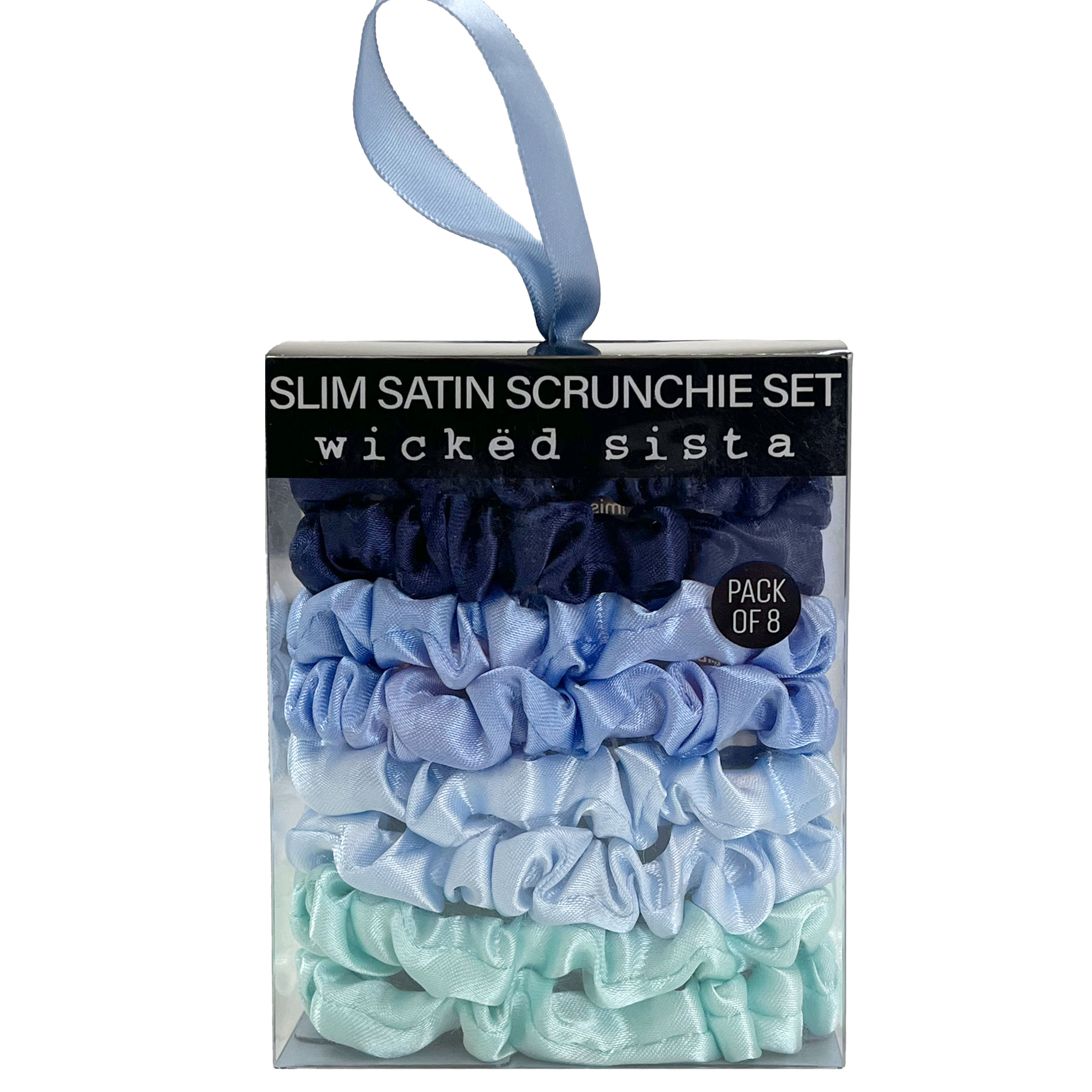 Blue slim satin scrunchie set
