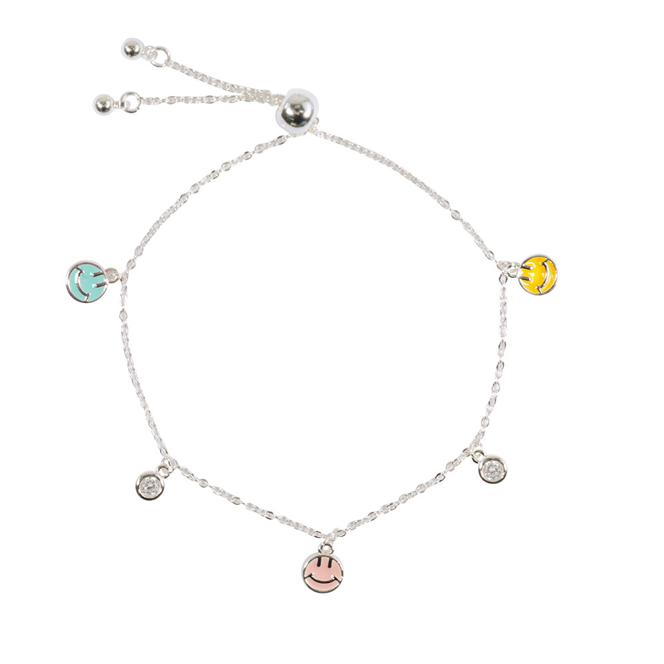 Stunning silver bracelet with smiley charms.