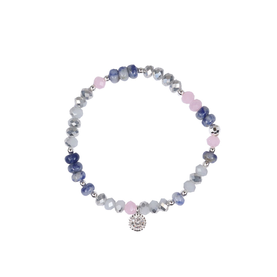 Sodalite charm silver beaded bracelet